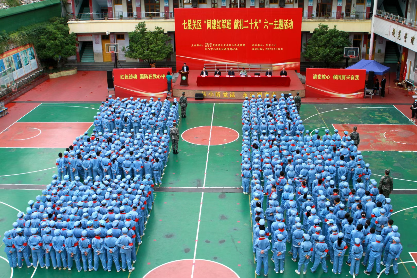 这是一个别开生面的“六一儿童节”。老区少年以红色基因培育爱国之志,滋养爱国就要爱国防的种子。“少年强则国强”。无数仁人志士的思想寄托,在六小这所拥有四千五百名学生的身上,得到了展示。