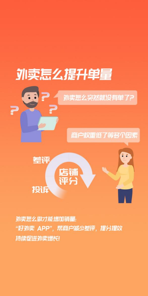 “减少差评”:“好外卖App”有差评预警功能,平均可以帮商户减少30%的差评;