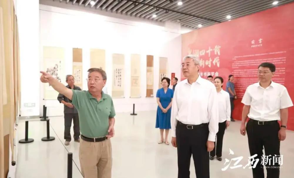9月1日,省委书记、省人大常委会主任尹弘前往江西省美术馆,参观正在这里举办的“墨润四十载 奋进新时代”——江西省老年书画学会成立40周年作品展。